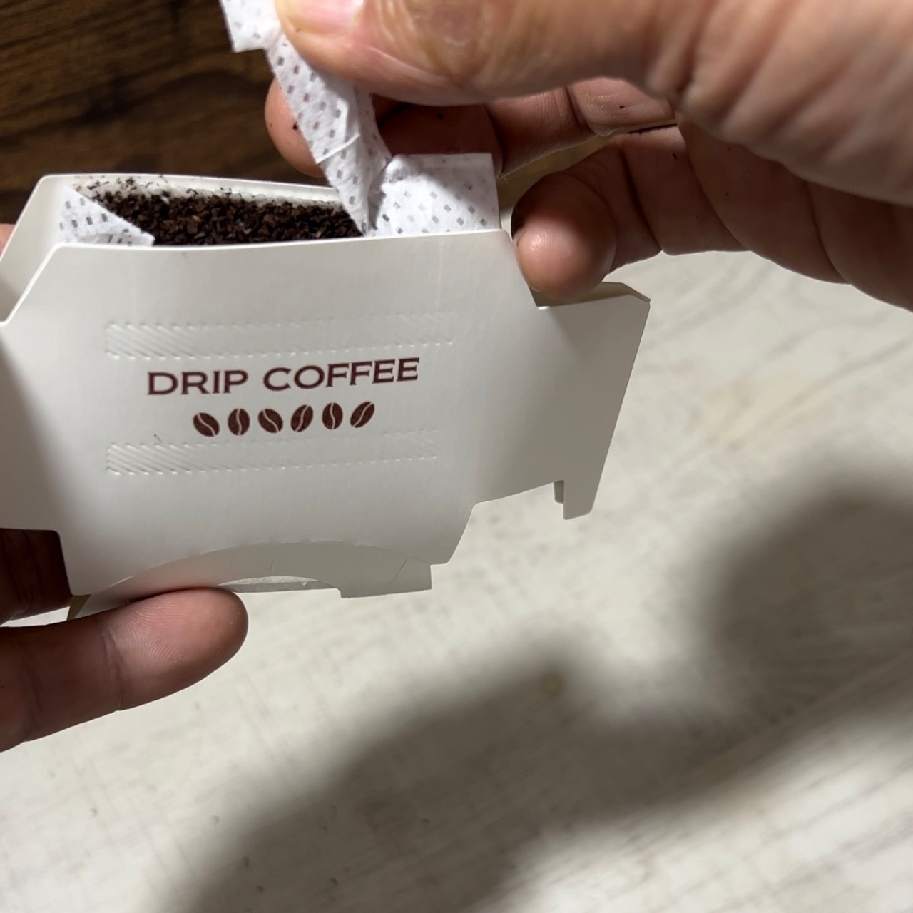 ④ドリップバッグをカップに乗せる